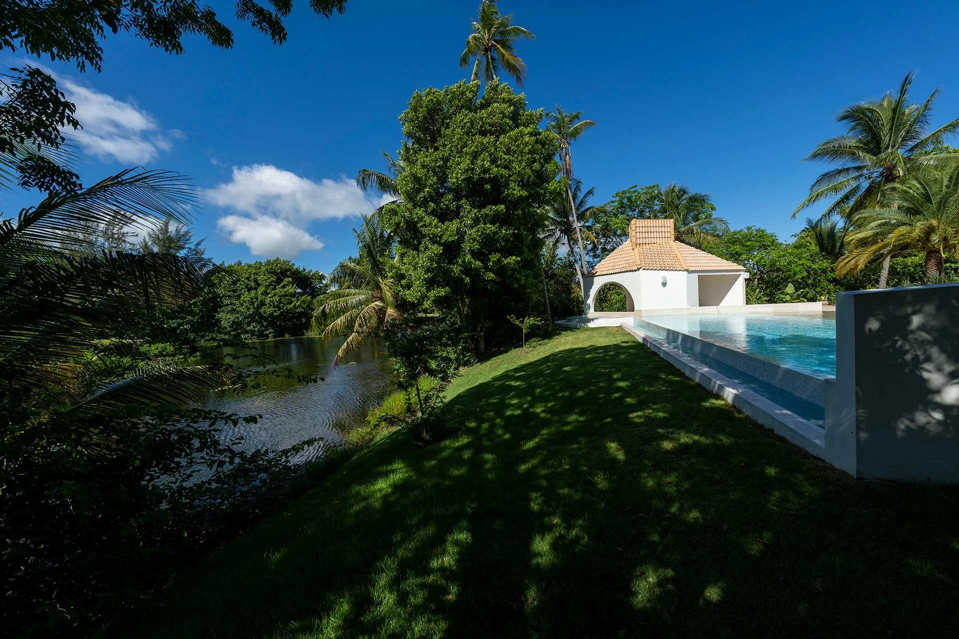 This residence is designed to maximize its corner location at the convergence of two water inlets from the Espíritu Santo River Estuary in Río Grande, Puerto Rico. It’s accessed through a street in a residential suburb, where many of the original homes—now largely demolished—featured expansive Iberian-tiled roofs. The design seeks to reinterpret these elements while introducing the community’s first interior courtyard, using contemporary architectural language.